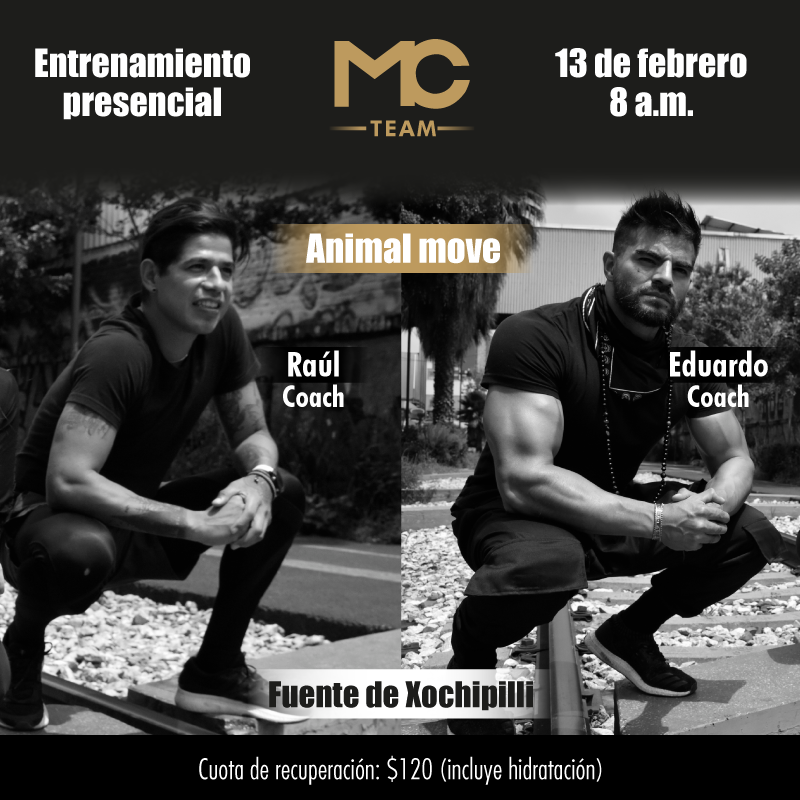 Asiste a nuestro entrenamiento con nuestros coaches Raúl y Eduardo donde desarrollarás fuerza y resistencia con tu propio cuerpo a través de movimientos animales.